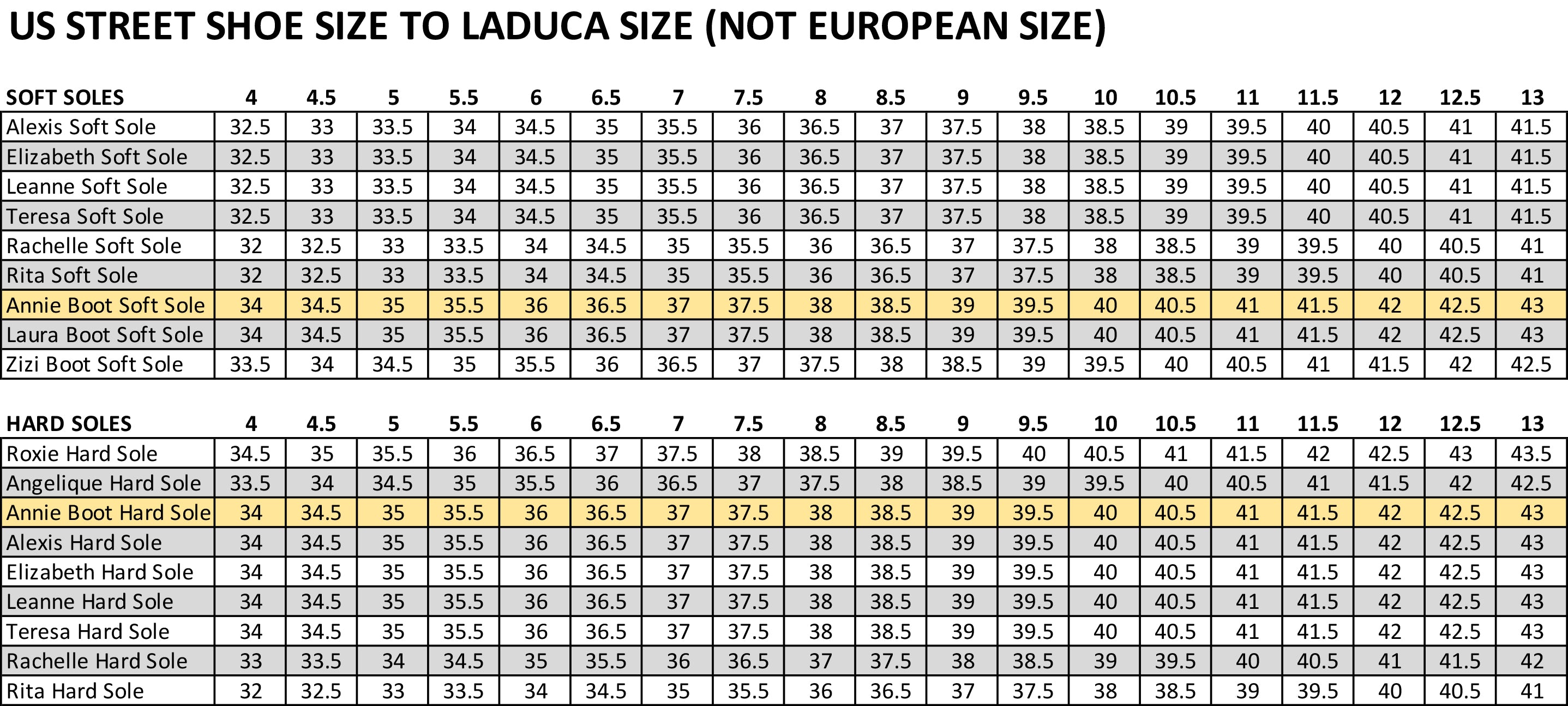 Don't see the size you were looking for? Give us a call at (212)586-2079 or e-mail us at info@laducashoes.com to place a sales order or to have us help you find the best style for you!
