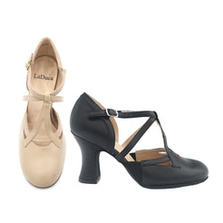 Crafted with a soft sole, a sturdy 3" heel, and an ample rounded toe, The Katarina offers the perfect balance of support, flexibility, functionality and comfort. Its design ensures a secure fit through every movement, making it the reliable/stylish choice for class, stage and rehearsal.